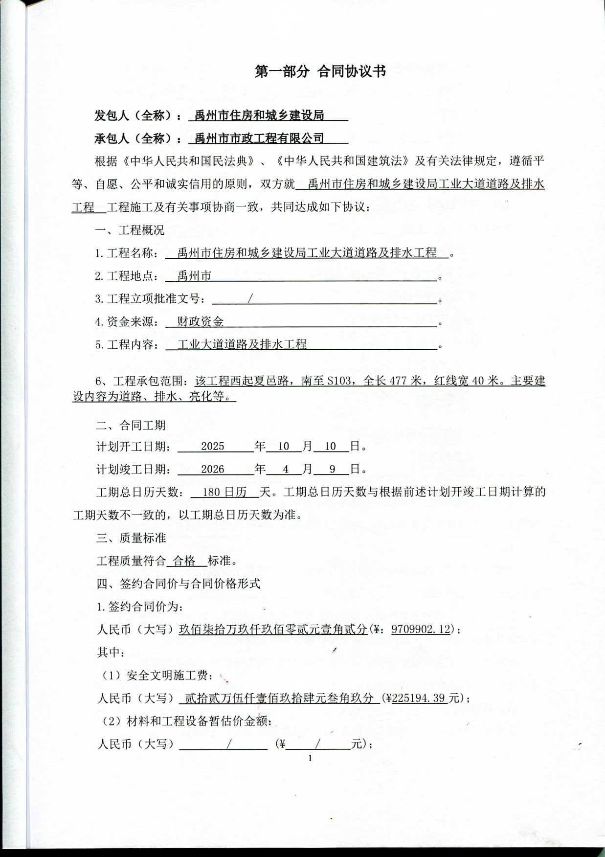 1 | 城市道路工程施工 | 工业大道 | 180天 | 杨红菊 | 豫************ |