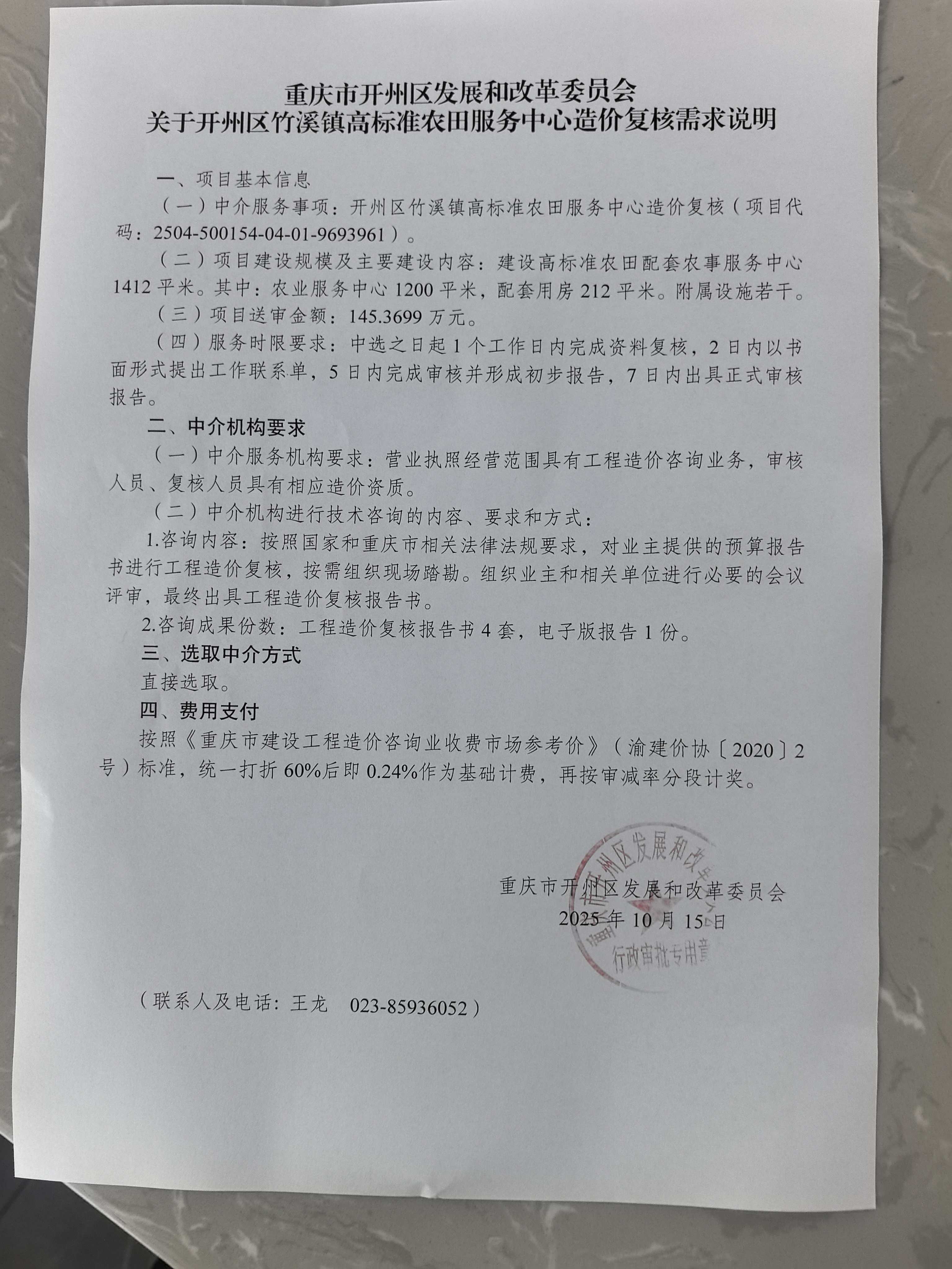 关于为【开州区竹溪镇高标准农田服务中心】 公开选取【工程造价咨询】机构的公告