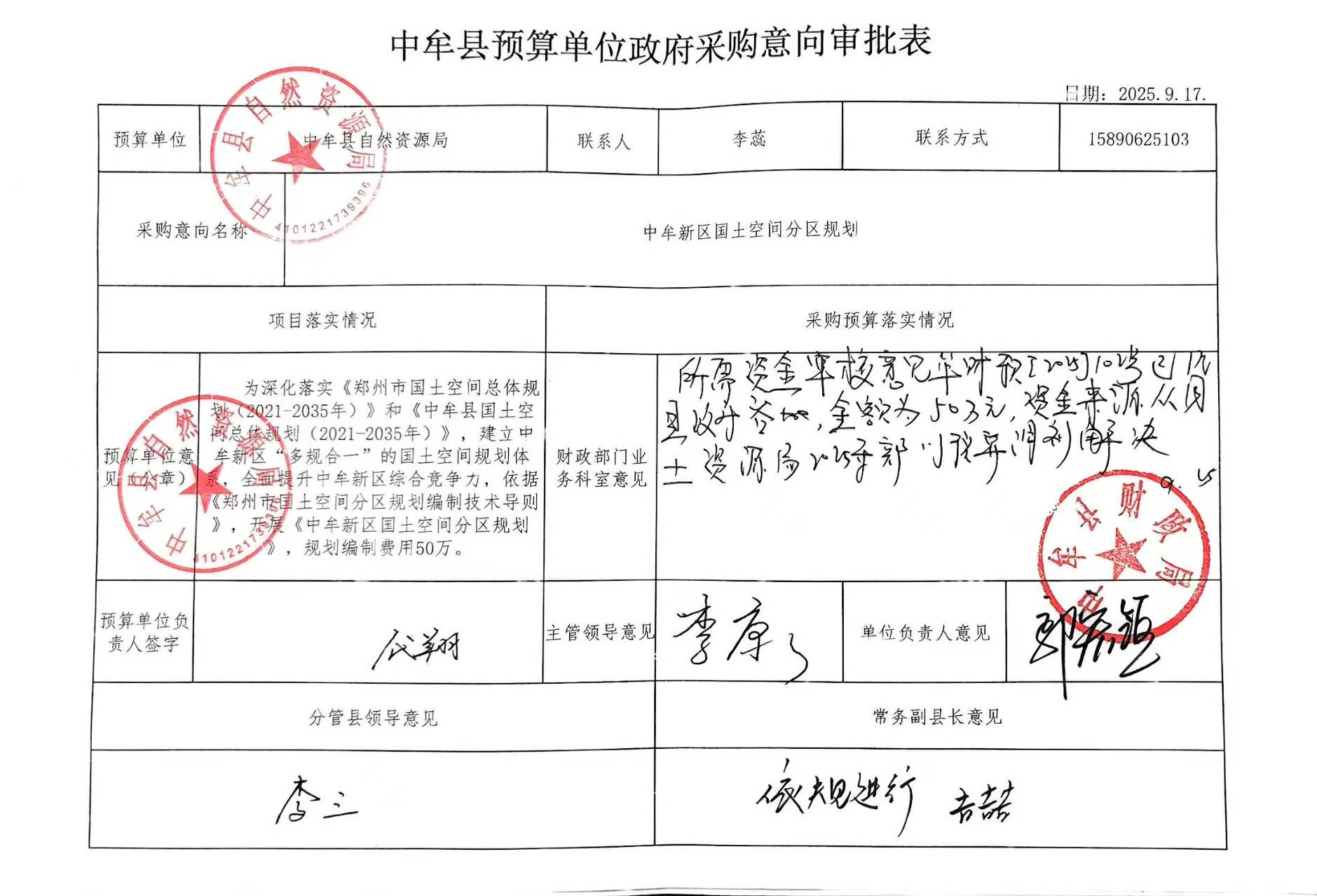 1 | ******资源局 | ******资源局中牟新区国土空间分区规划项目 | 50.00 | 2025年11月 |