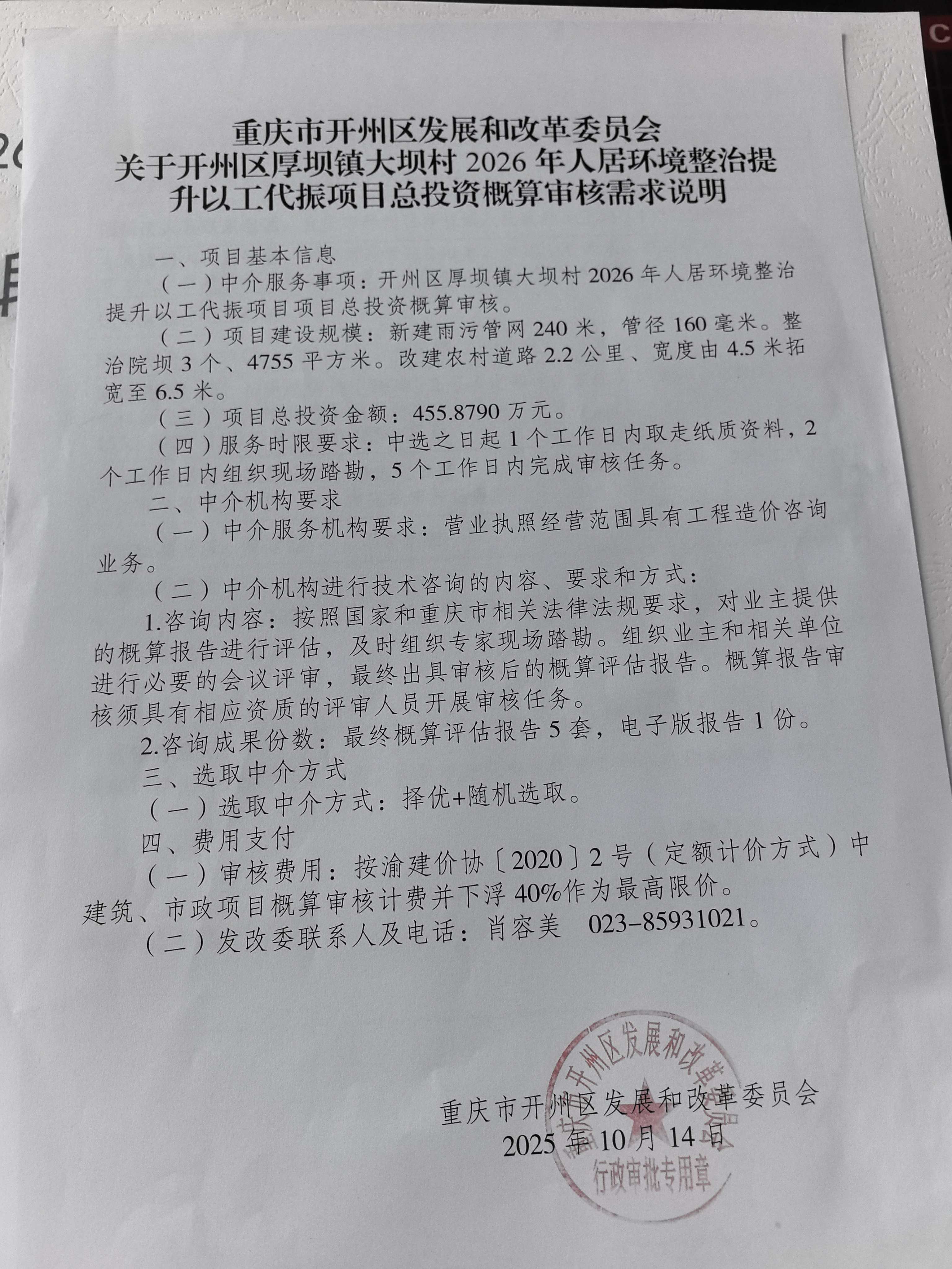 金额说明 | 按渝建价协〔2020〕2号(定额计价方式)中建筑、市政项目概算审核计费并下浮40%作为最高限价。 |
